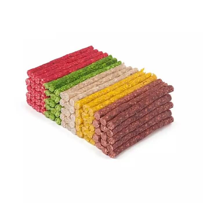 با پنج طعم: مرغ، اسفناج، گوساله، بره و بدون طعم